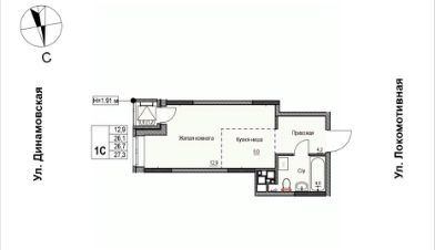 Продаётся 1-комнатная квартира в строящемся доме (Дом 2), срок сдачи: II-кв. 2028, общей площадью 26.7 кв.м., на 5 этаже. ЖК "Локомотив" - это жилой комплекс, состоящий из трех домов, объединенных стилобатом. Удобное расположение, 15 минут до центра.