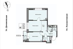 Продаётся 3-комнатная квартира в строящемся доме (Дом 2), срок сдачи: II-кв. 2028, общей площадью 54.8 кв.м., на 5 этаже. ЖК "Локомотив" - это жилой комплекс, состоящий из трех домов, объединенных стилобатом. Удобное расположение, 15 минут до центра.