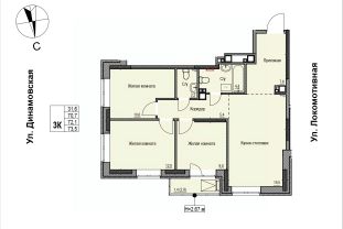 Продаётся 3-комнатная квартира в строящемся доме (Дом 2), срок сдачи: II-кв. 2028, общей площадью 72.1 кв.м., на 6 этаже. ЖК "Локомотив" - это жилой комплекс, состоящий из трех домов, объединенных стилобатом. Удобное расположение, 15 минут до центра.