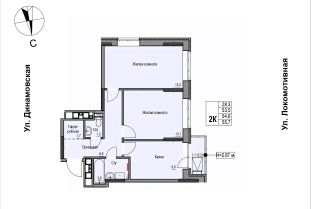 Продаётся 2-комнатная квартира в строящемся доме (Дом 2), срок сдачи: II-кв. 2028, общей площадью 54.6 кв.м., на 6 этаже. ЖК "Локомотив" - это жилой комплекс, состоящий из трех домов, объединенных стилобатом. Удобное расположение, 15 минут до центра.