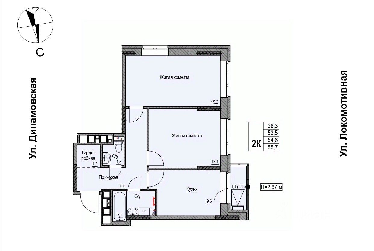 Продаётся 2-комнатная квартира в строящемся доме (Дом 2), срок сдачи: II-кв. 2028, общей площадью 54.6 кв.м., на 7 этаже. ЖК "Локомотив" - это жилой комплекс, состоящий из трех домов, объединенных стилобатом. Удобное расположение, 15 минут до центра.