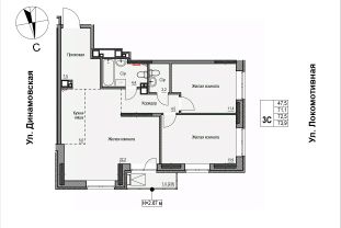 Продаётся 3-комнатная квартира в строящемся доме (Дом 2), срок сдачи: II-кв. 2028, общей площадью 72.5 кв.м., на 9 этаже. ЖК "Локомотив" - это жилой комплекс, состоящий из трех домов, объединенных стилобатом. Удобное расположение, 15 минут до центра.