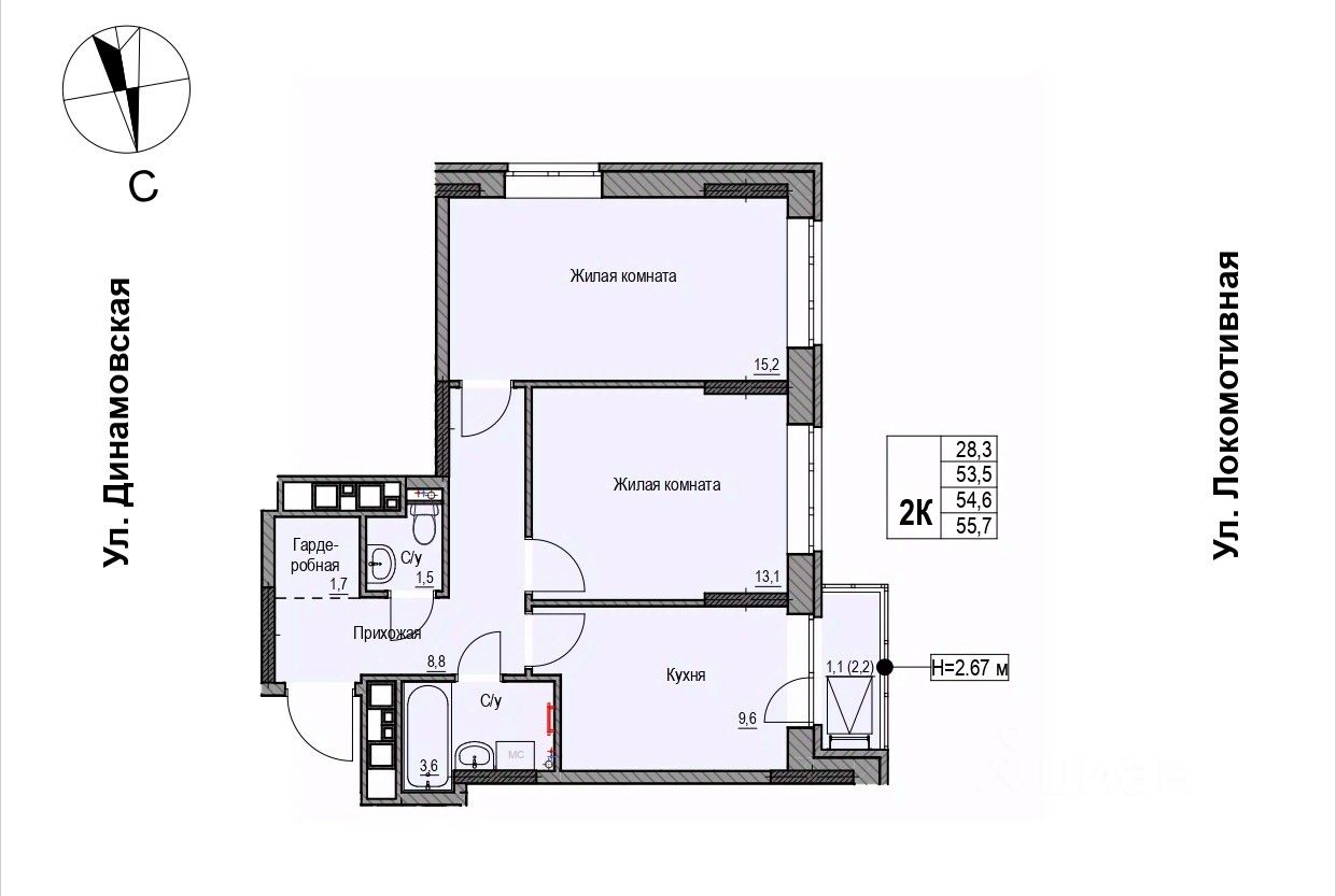 Продаётся 2-комнатная квартира в строящемся доме (Дом 2), срок сдачи: II-кв. 2028, общей площадью 54.6 кв.м., на 10 этаже. ЖК "Локомотив" - это жилой комплекс, состоящий из трех домов, объединенных стилобатом. Удобное расположение, 15 минут до центра.