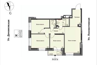 Продаётся 3-комнатная квартира в строящемся доме (Дом 2), срок сдачи: II-кв. 2028, общей площадью 71.8 кв.м., на 11 этаже. ЖК "Локомотив" - это жилой комплекс, состоящий из трех домов, объединенных стилобатом. Удобное расположение, 15 минут до центра.