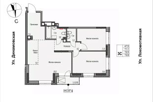 Продаётся 3-комнатная квартира в строящемся доме (Дом 2), срок сдачи: II-кв. 2028, общей площадью 72.3 кв.м., на 11 этаже. ЖК "Локомотив" - это жилой комплекс, состоящий из трех домов, объединенных стилобатом. Удобное расположение, 15 минут до центра.