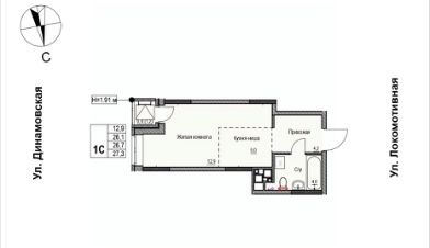 Продаётся 1-комнатная квартира в строящемся доме (Дом 2), срок сдачи: II-кв. 2028, общей площадью 26.9 кв.м., на 12 этаже. ЖК "Локомотив" - это жилой комплекс, состоящий из трех домов, объединенных стилобатом. Удобное расположение, 15 минут до центра.