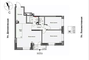 Продаётся 3-комнатная квартира в строящемся доме (Дом 2), срок сдачи: II-кв. 2028, общей площадью 72.3 кв.м., на 12 этаже. ЖК "Локомотив" - это жилой комплекс, состоящий из трех домов, объединенных стилобатом. Удобное расположение, 15 минут до центра.