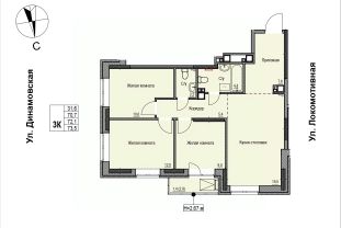 Продаётся 3-комнатная квартира в строящемся доме (Дом 2), срок сдачи: II-кв. 2028, общей площадью 71.8 кв.м., на 13 этаже. ЖК "Локомотив" - это жилой комплекс, состоящий из трех домов, объединенных стилобатом. Удобное расположение, 15 минут до центра.