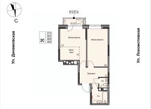 Продаётся 2-комнатная квартира в строящемся доме (Дом 2), срок сдачи: II-кв. 2028, общей площадью 46.8 кв.м., на 13 этаже. ЖК "Локомотив" - это жилой комплекс, состоящий из трех домов, объединенных стилобатом. Удобное расположение, 15 минут до центра.