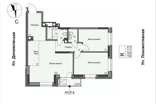 Продаётся 3-комнатная квартира в строящемся доме (Дом 2), срок сдачи: II-кв. 2028, общей площадью 72.3 кв.м., на 13 этаже. ЖК "Локомотив" - это жилой комплекс, состоящий из трех домов, объединенных стилобатом. Удобное расположение, 15 минут до центра.