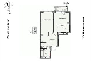 Продаётся 2-комнатная квартира в строящемся доме (Дом 2), срок сдачи: II-кв. 2028, общей площадью 46.8 кв.м., на 16 этаже. ЖК "Локомотив" - это жилой комплекс, состоящий из трех домов, объединенных стилобатом. Удобное расположение, 15 минут до центра.