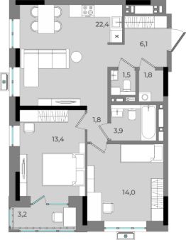 22,4 м²