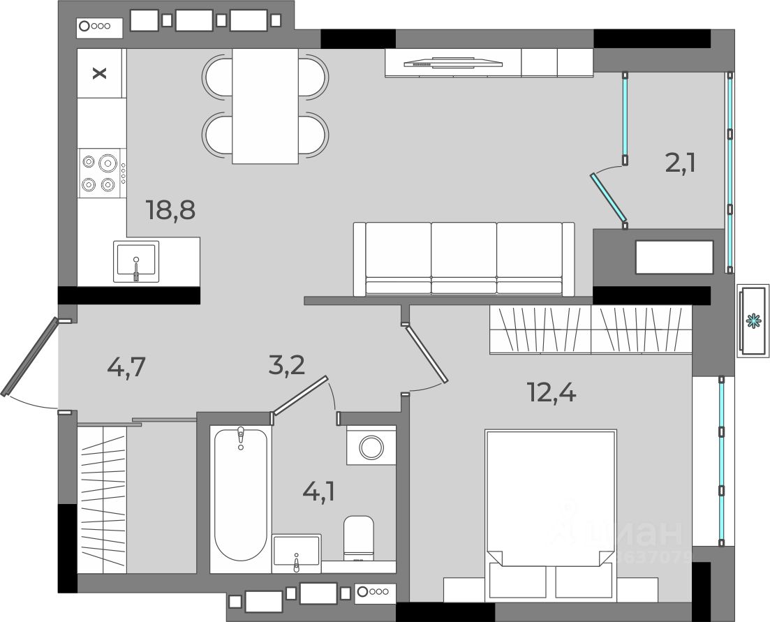 18,8 м²