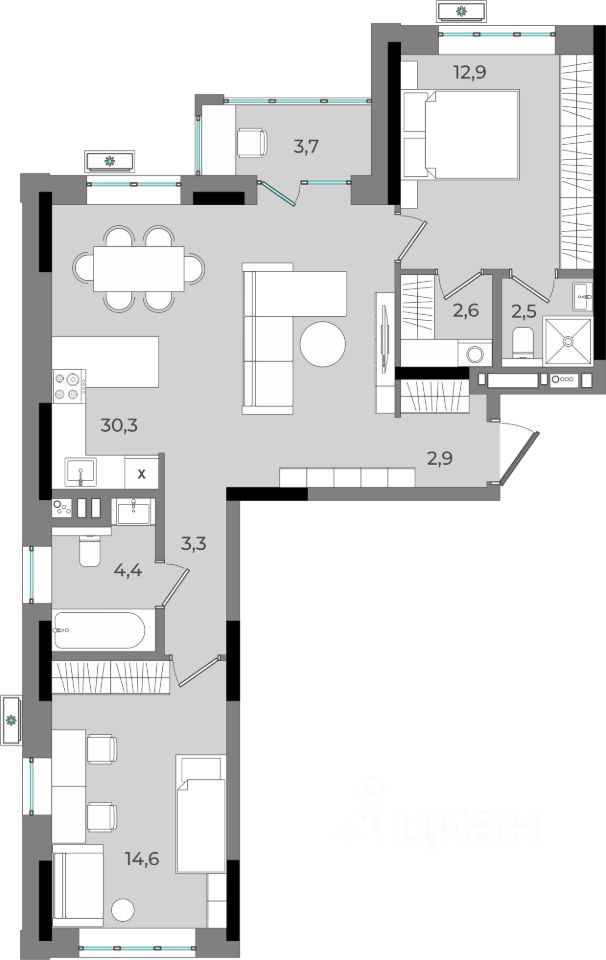 30,3 м²