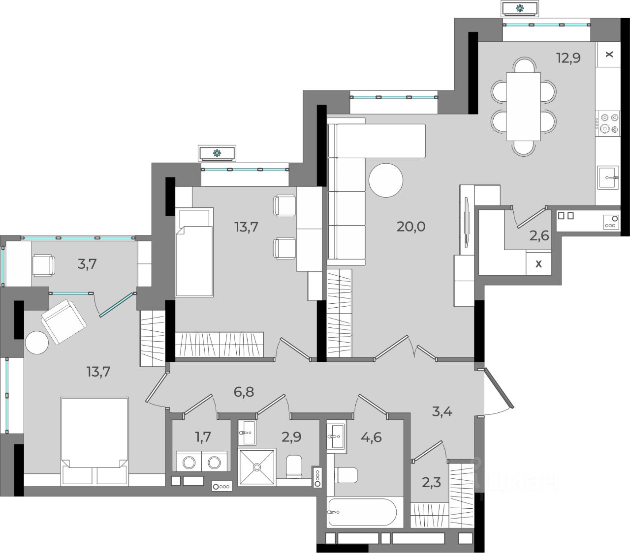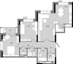 12,9 м²