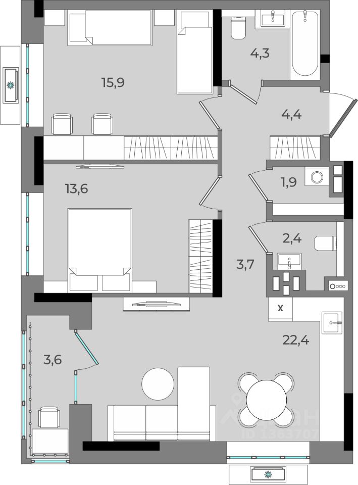 22,4 м²