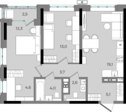 19,1 м²