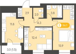 Продаётся 2-комнатная квартира в строящемся доме (Дом 19А), срок сдачи: IV-кв. 2025, общей площадью 54.6 кв.м., на 9 этаже. Новый восход - современный жилой комплекс на первой линии Воткинского шоссе. Дома жилого комплекса связывает благоустроенный променад, ведущий в парк Космонавтов.