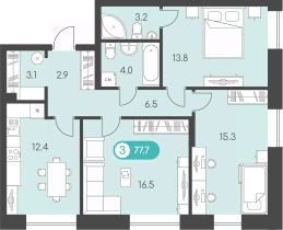 Продаётся 3-комнатная квартира в сданном доме (Дом 15А), срок сдачи: IV-кв. 2024, общей площадью 77.7 кв.м., на 2 этаже. Новый восход - современный жилой комплекс на первой линии Воткинского шоссе. Дома жилого комплекса связывает благоустроенный променад, ведущий в парк Космонавтов.