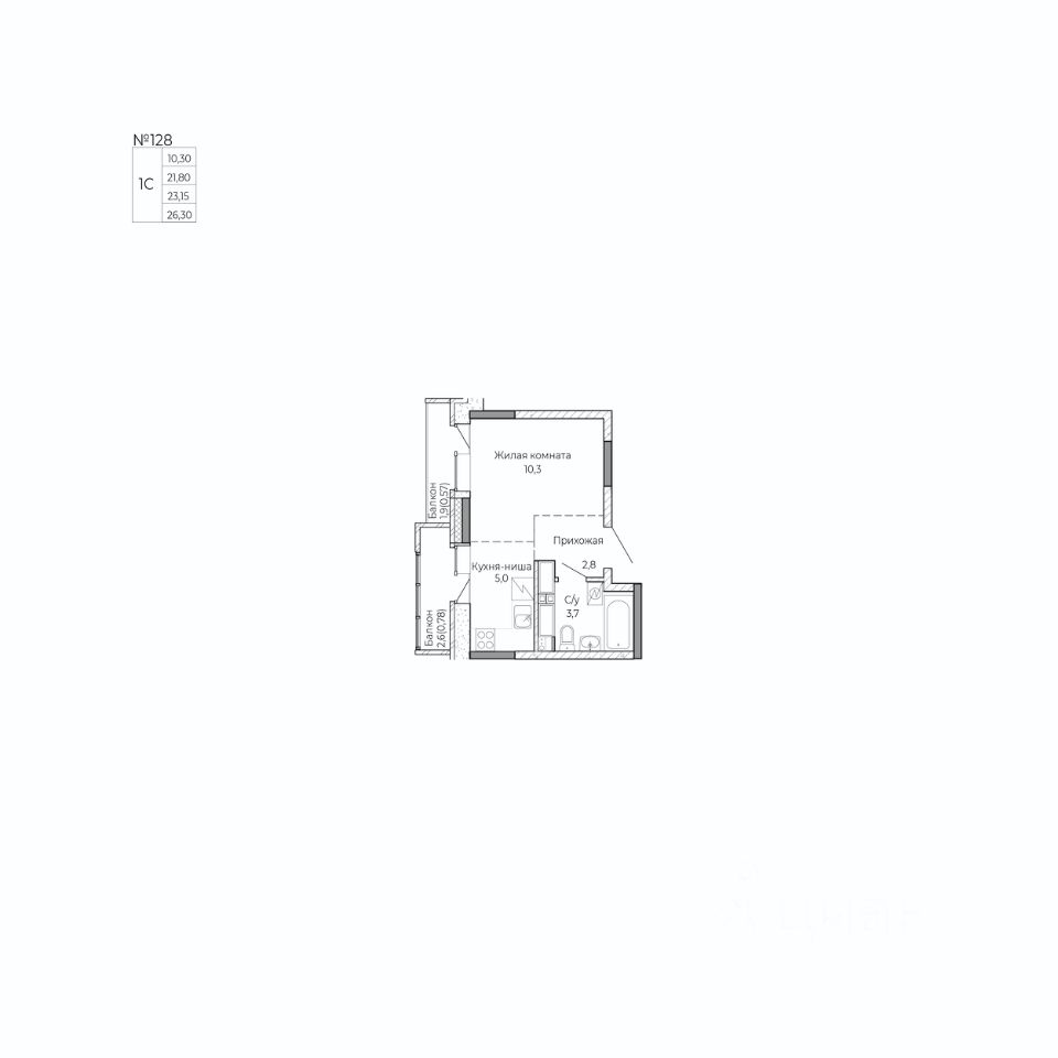Общая площадь26,3 м²