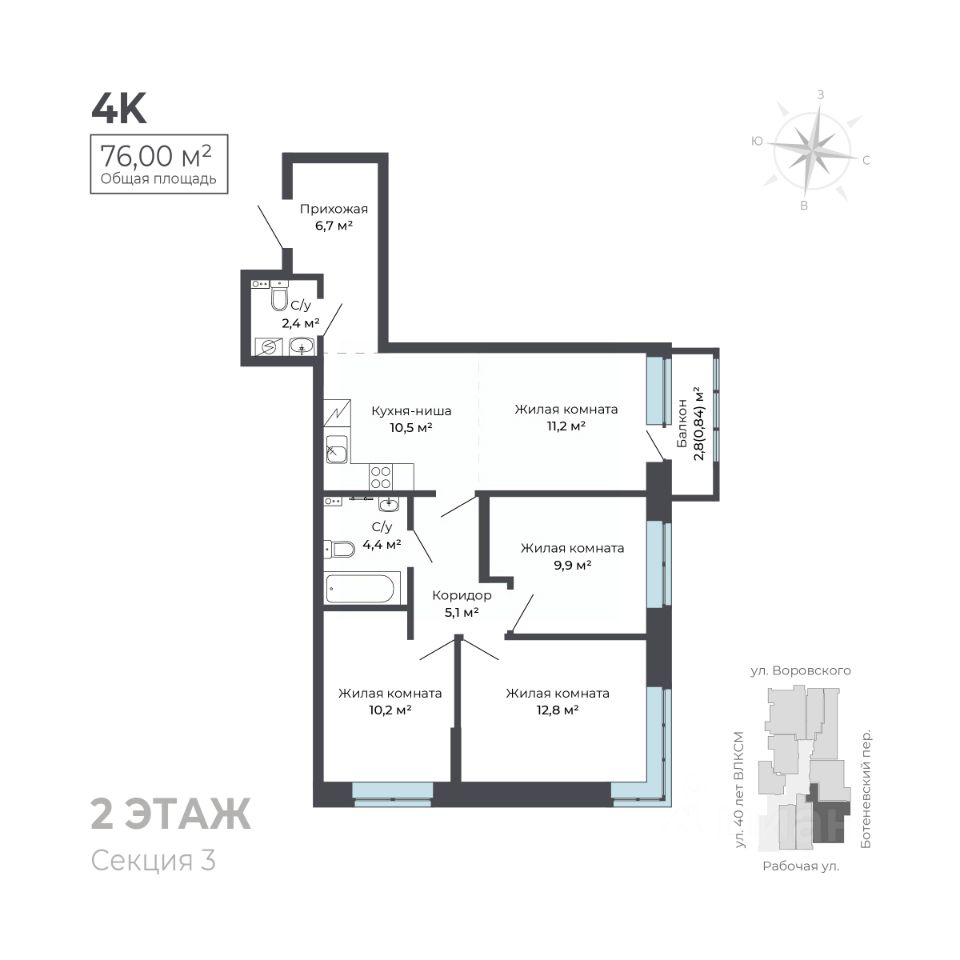 На первом этаже расположена торговая галерея. Дом оснащен автономной системой отопления и видеонаблюдением для вашей безопасности. Для удобства жителей предусмотрены наземный паркинг и большая городская парковка, а также индивидуальные кладовые помещения.
