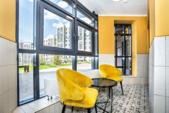 Подъезды новых домов похожи на произведения искусства: просторные холлы, большие люстры и картины. В отделке используются экологичные материалы и природные оттенки, интерьер дополняют настенные панно, мебель и дизайнерские элементы.