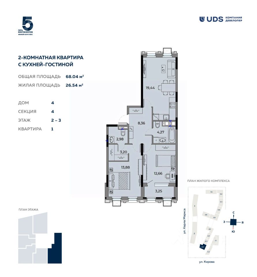 Бизнес-класс на ул. Кирова. Воплощайте мечты о доме в бульварном квартале "Пять континентов". Здесь вы сможете жить в центре Ижевска в эстетичном современном пространстве. Дома комплекса спроектированы по европейским тенденциям международным архитектурным бюро MLA+. Здесь общественные городские и частные зоны разделены не привычными заборами, а гармонично соседствуют друг с другом. Вдоль домов "Пяти континентов" пройдет городской пешеходный бульвар и станет новым маршрутом прогулок и отдыха. Бульвар начнется со сквера на пересечении улиц Кирова и Карла Маркса. И уже сейчас часть сквера построена, приходите и оцените вживую. Если вы хотите жить в невысотном доме в спокойной обстановке, то в "Пяти континентах" вам подойдут уютные дома с эркерами и лоджиями высотой всего 6, 7 и 9 этажей. А если нравятся высотные дома, то в "Пяти континентах" вы увидите и высотные секции внутри квартала высотой 12 и 17 этажей. Ездить на автомобиле ежедневно или добираться пешком жителям "Пяти континентах" удобно одинаково. В комплексе есть подземный паркинг, и, в целом, он выгодно расположен на пересечении улиц Кирова и Карла Маркса, рядом с остановкой "Магазин "Океан". В 15 минутах хотьбы - Центральная площадь и набережная. Здания комплекса примыкают друг другу торцами и создают единую архитектурную форму. Дома по обе стороны бульвара задают направление для прогулок, а волнообразный рисунок брусчатки и плавные изгибы делают бульвар похожим на русло реки. Каждый дом комплекса отличается от другого этажностью, формой, цветом, геометрией фасада. • 6-17 этажей высота домов, • Всего 5 квартир на этаже, • На -1 этаже подземный паркинг, • Высота потолка 2,7 м, • Сквозной вход в дом с улицы и со двора, • Огороженный двор без машин. Передача ключей 1 квартал 2028 года.