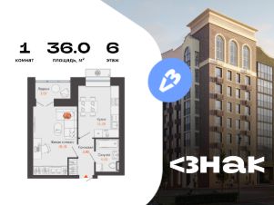 В новом жилом комплексе комфорт-класса "Знак" продается 1-комнатная квартира площадью 36.00 кв. м с отделкой white box. Квартира находится на 6 этаже 7-этажного корпуса 1. Девелопер проекта - федеральный застройщик "Железно".