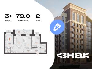 В новом жилом комплексе комфорт-класса "Знак" продается 3-комнатная квартира площадью 79.00 кв. м с отделкой white box. Квартира находится на 2 этаже 8-этажного корпуса 1. Девелопер проекта - федеральный застройщик "Железно".