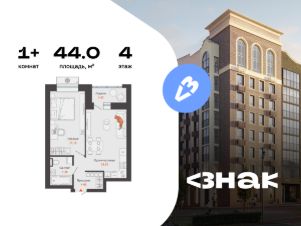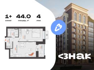 В новом жилом комплексе комфорт-класса "Знак" продается 1-комнатная квартира площадью 44.00 кв. м с отделкой white box. Квартира находится на 4 этаже 8-этажного корпуса 1. Девелопер проекта - федеральный застройщик "Железно".