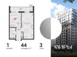 Продаётся 1-комнатная квартира квартира в 10 минутах от центра Ижевска, ул Холмогорова, площадью 44.00 кв. м. Квартира находится в жилом комплексе бизнес-класса "МИРЫ" от федерального застройщика "Железно".