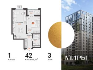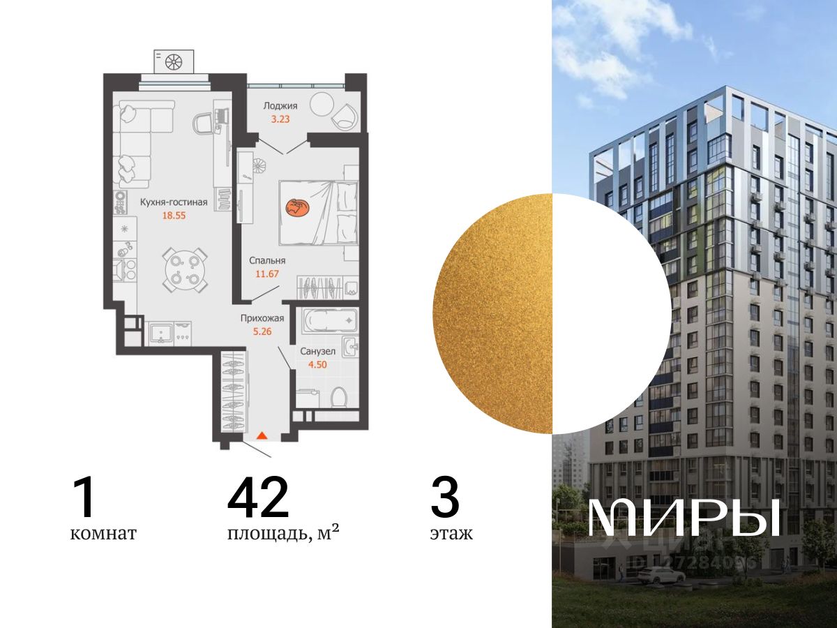 Продаётся 1-комнатная квартира квартира в 10 минутах от центра Ижевска, ул Холмогорова, площадью 42.00 кв. м. Квартира находится в жилом комплексе бизнес-класса "МИРЫ" от федерального застройщика "Железно".
