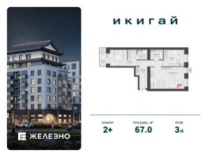 Продается 2-комнатная квартира площадью 67.00 кв. м с предчистовой отделкой. Квартира находится в жилом комплексе комфорт+ "Икигай" от федерального девелопера "Железно".