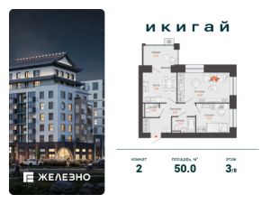 Продается 2-комнатная квартира площадью 50.00 кв. м с предчистовой отделкой. Квартира находится в жилом комплексе комфорт+ "Икигай" от федерального девелопера "Железно".