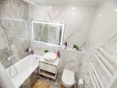 Полностью готово к заселению: выполнен современный евроремонт, остаётся ВСЯ качественная бытовая техника (холодильник, духовка, стиральная машина, кондиционер), грдеробная и мебель.