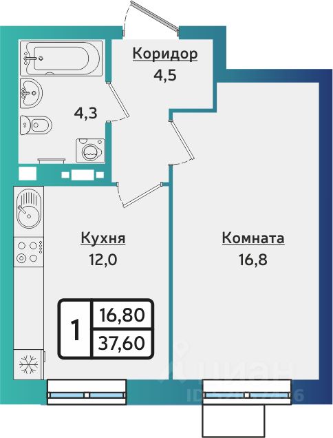 Общая площадь37,8 м²