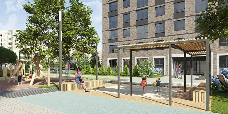 На детских площадках устанавливается долговечное, экологически чистое игровое оборудование. Играть здесь будет не только интересно, но и безопасно! Уютный и безопасный двор без машин выполняется в эко-тематике.