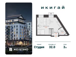 Продается студия площадью 32.00 кв. м с предчистовой отделкой. Квартира находится в жилом комплексе комфорт+ "Икигай" от федерального девелопера "Железно".