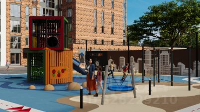 Двор жилого комплекса будет расположен на стилобате. Его благоустройство предполагает обустроенную детскую зону и зону отдыха для взрослых. Для малышей на придомовой территории дома DRG GRUPP предусмотрели уникальную площадку с песочницей, качественными детскими игровым и спортивным комплексом из натуральных материалов.