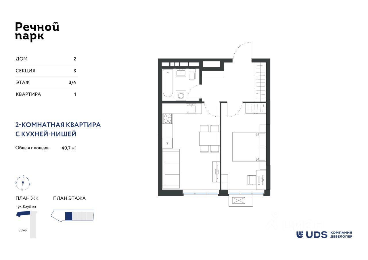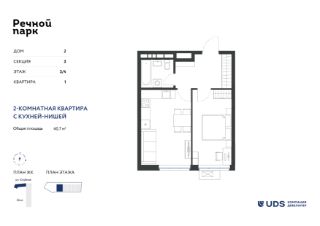 Двухкомнатная квартира евро-планировки в 4-этажной секции ЖК "Речной парк" дом 2.