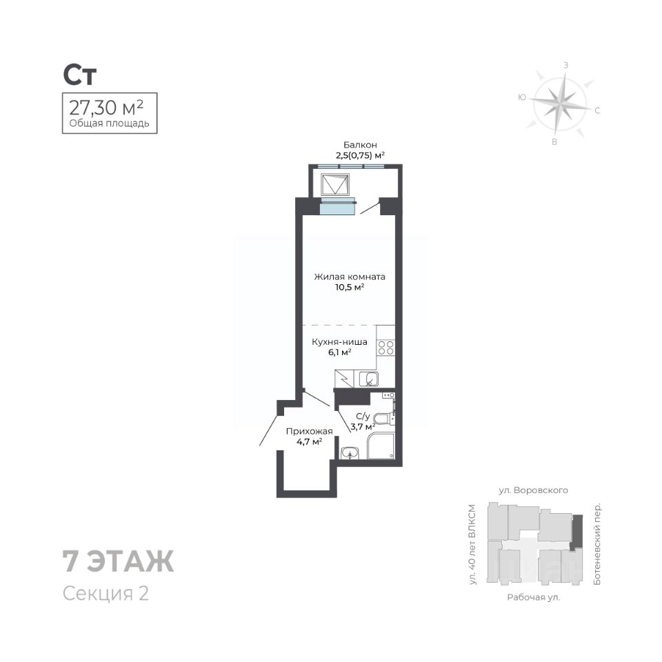 На первом этаже расположена торговая галерея. Дом оснащен автономной системой отопления и видеонаблюдением для вашей безопасности. Для удобства жителей предусмотрены наземный паркинг и большая городская парковка, а также индивидуальные кладовые помещения.