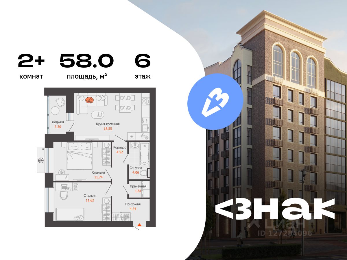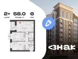 В новом жилом комплексе комфорт-класса "Знак" продается 2-комнатная квартира площадью 58.00 кв. м с отделкой. Квартира находится на 6 этаже 8-этажного корпуса 1. Девелопер проекта - федеральный застройщик "Железно".