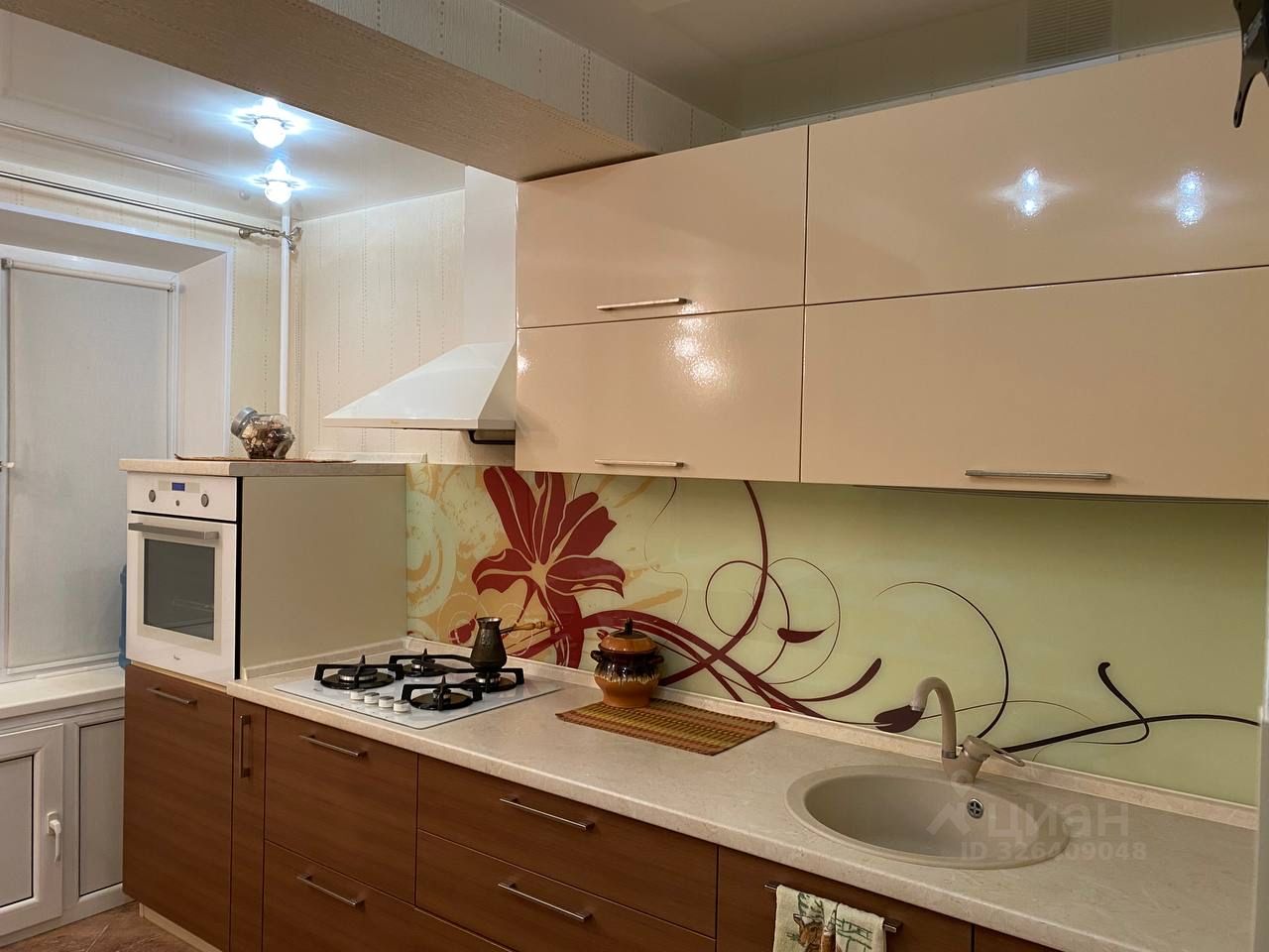 Внизу кухни все секции кроме крайних выкатные, есть бутылочница - все доводчики на кухне Blum. Из техники газовая варочная поверхность и вытяжка над ней и электрическая духовка в колонне - все бренда whirlpool одной серии.