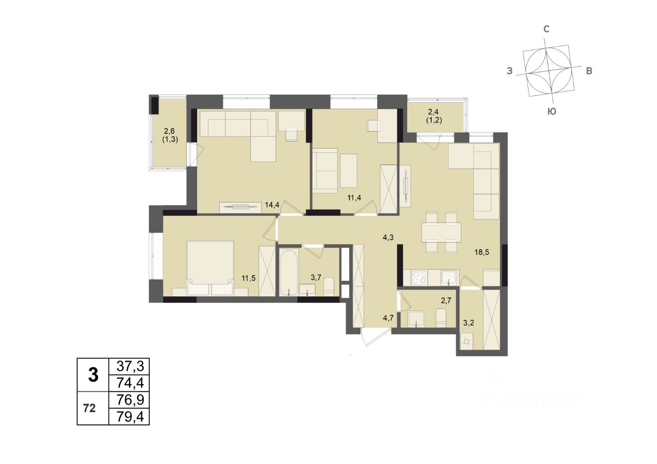 Общая площадь76,9 м²