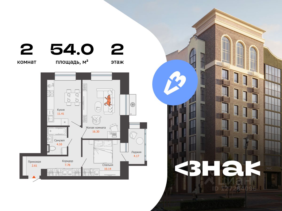 В новом жилом комплексе комфорт-класса "Знак" продается 2-комнатная квартира площадью 54.00 кв. м с отделкой white box. Квартира находится на 2 этаже 7-этажного корпуса 1. Девелопер проекта - федеральный застройщик "Железно". "Знак" - начало добрых перемен. Это жилой комплекс, где всё складывается правильно. Перемены появляются там, где для них создана среда. Когда парк под окнами, а не на другом конце города. Когда коворкинг рядом, и можно сосредоточиться, не уезжая в центр. Когда во дворе - площадки для тренировок, йоги, движения. "Знак" - как символ решений, которые привели к лучшему. Знаковое место Здесь вас ждут оживлённые площади, наполненные событиями и городским ритмом, и уютные бульвары для неспешных прогулок. Для ценителей тишины и созерцания найдутся уединённые уголки, а поклонников активного образа жизни ждут современные и технологичные спортивные площадки. Архитектура как знак качества Жилой комплекс "Знак" состоит из 6 секций высотой 7-8 этажей, лаконичный ансамбль которых окружает внутренний зеленый двор с местами для отдыха жителей. Природные материалы - древесина, камень, - натуральные оттенки земли и травы усиливают гармонию с природой. Комбинированный вентилируемый фасад, прочный кирпичный фундамент, большие окна с 2-камерными стеклопакетами и 5-камерным ПВХ-профилем гарантируют долгий срок эксплуатации, тишину и благоприятный микроклимат в каждой квартире. Лобби: искусство, в котором живут Продуманное пространство с мягкими креслами и камерными зонами отдыха создаёт атмосферу уюта, где искусство становится частью повседневности. Это вдохновляющая среда, которая пробуждает чувства и воображение с первого взгляда. Дизайн лобби воплощает концепцию эмоций в искусстве через пластику и форму. Доминантой становятся выразительные гипсовые барельефы в виде масок, объемность которых подчеркивает многоуровневое освещение. В отделке гармонично сочетаются натуральные материалы: металл контрастирует с тёплым гипсом, а керамогранит - с текстильными панно в зонах отдыха. О застройщике "Железно" - федеральный девелопер со смыслом, создающий умные мини-города с развитой инфраструктурой и высоким уровнем сервиса. За 14 лет беспрерывного развития и стремительного роста компания точно определила своё предназначение: мы с любовью и уважением к человеку создаём города будущего, меняя мир и жизнь людей к лучшему. • 6 городов России: Киров, Ижевск, Ульяновск, Екатеринбург, Пермь, Волгоград. • Строим парки, школы и детские сады. • Земельный банк более 2 000 000 м2. • ТОП-4 застройщиков России по качеству жилья (ЕРЗ.рф от июня 2025). • 28 проектов. • 6-кратные победители и 25-кратные финалисты премии Urban Awards.