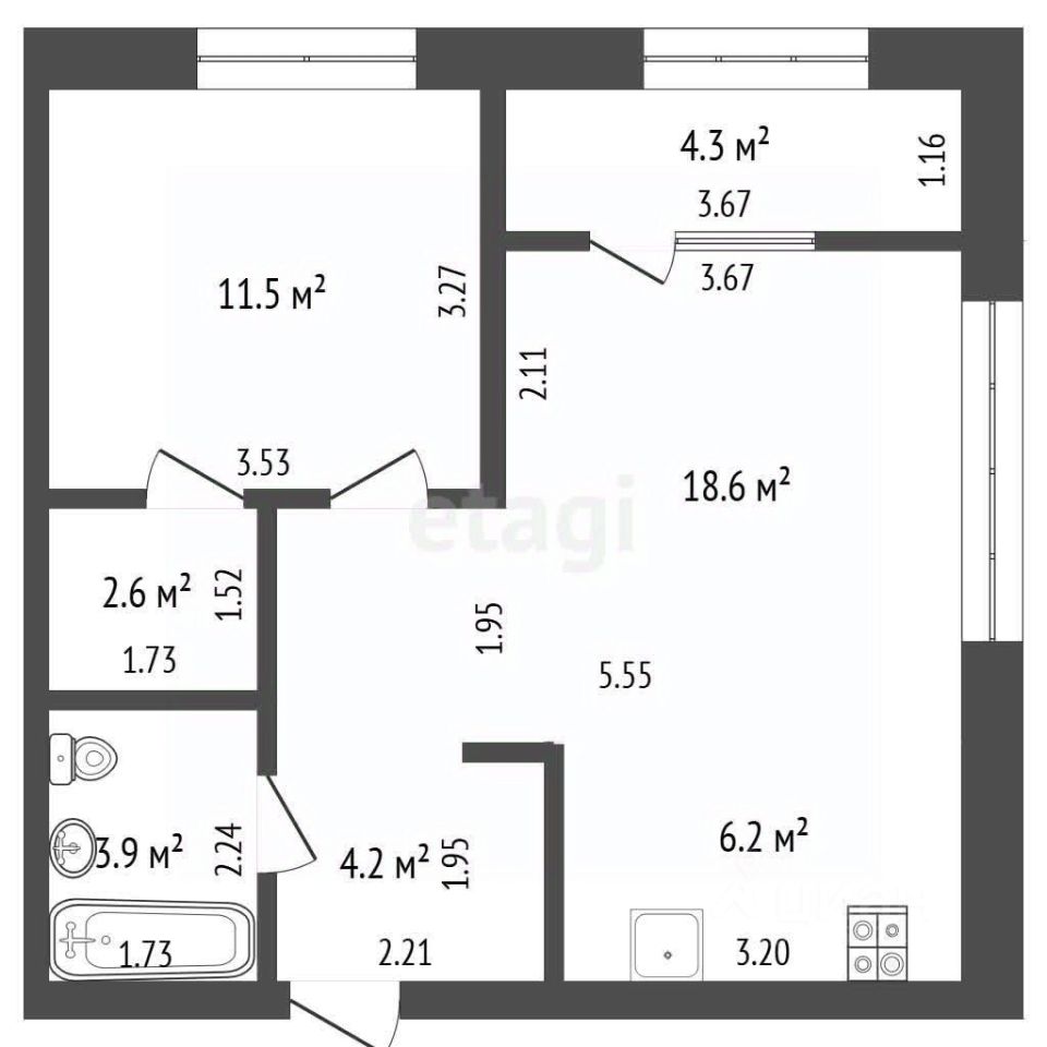 Квартира сдана с предчистовой отделкой, предоставляя новому владельцу свободу для реализации индивидуального дизайн-проекта.