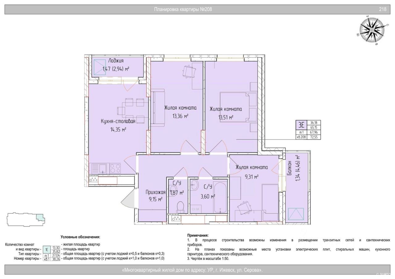 Общая площадь67,96 м²