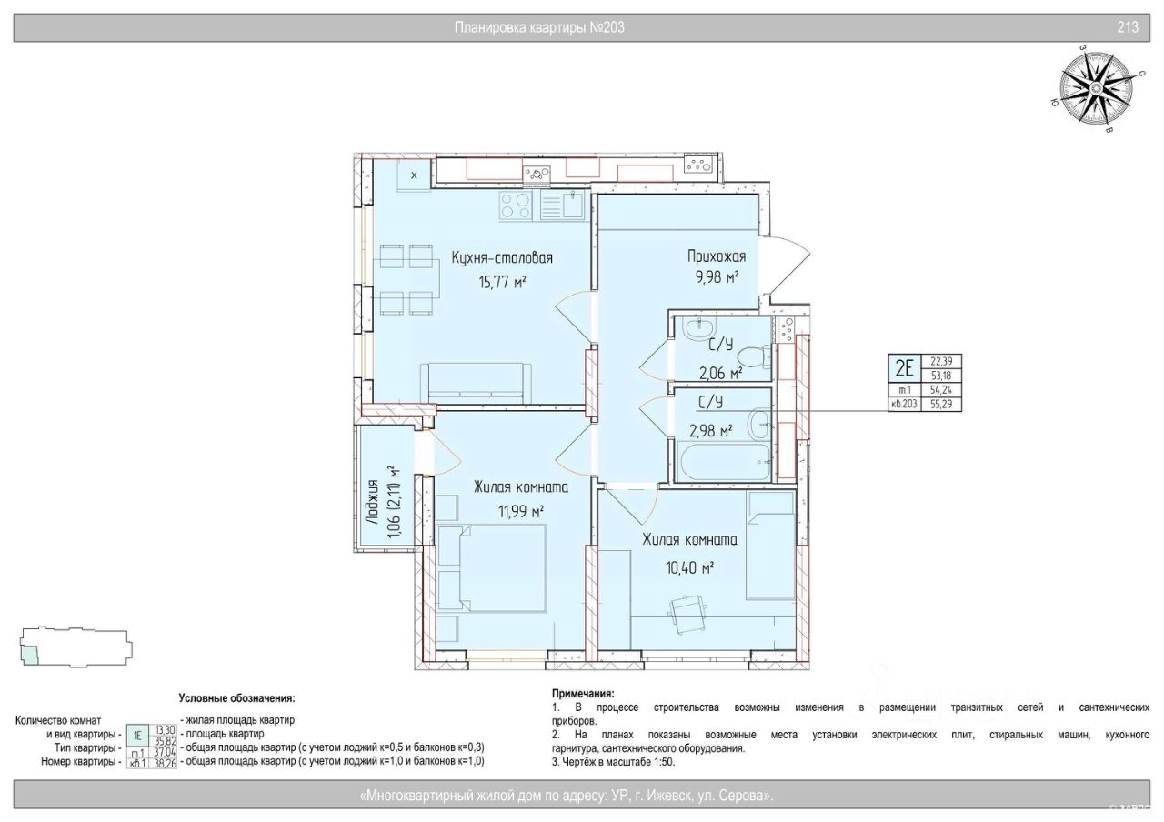 Общая площадь54,24 м²