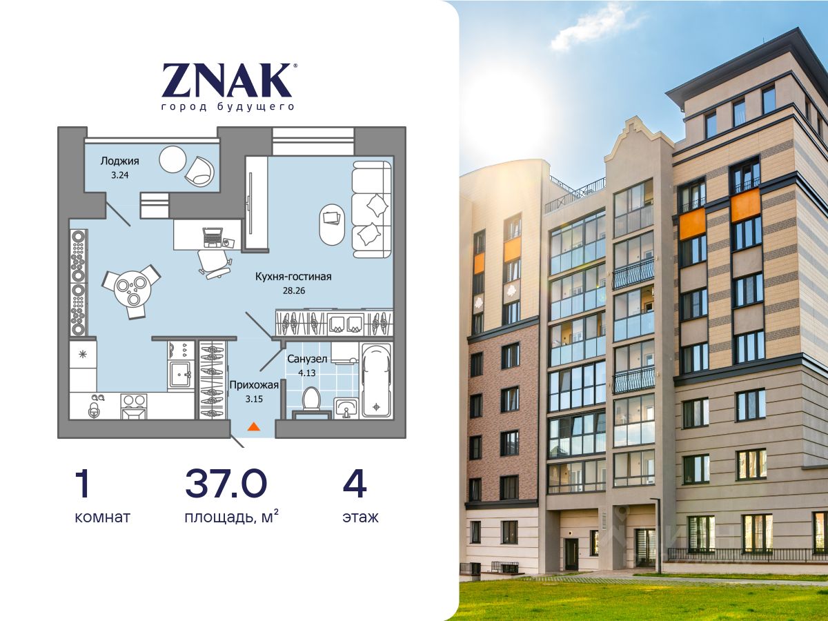 Продается студия площадью 37.00 кв. м. с предчистовой отделкой. Квартира находится в жилом комплексе комфорт-класса ZNAK, расположенном в районе ул. Берша.