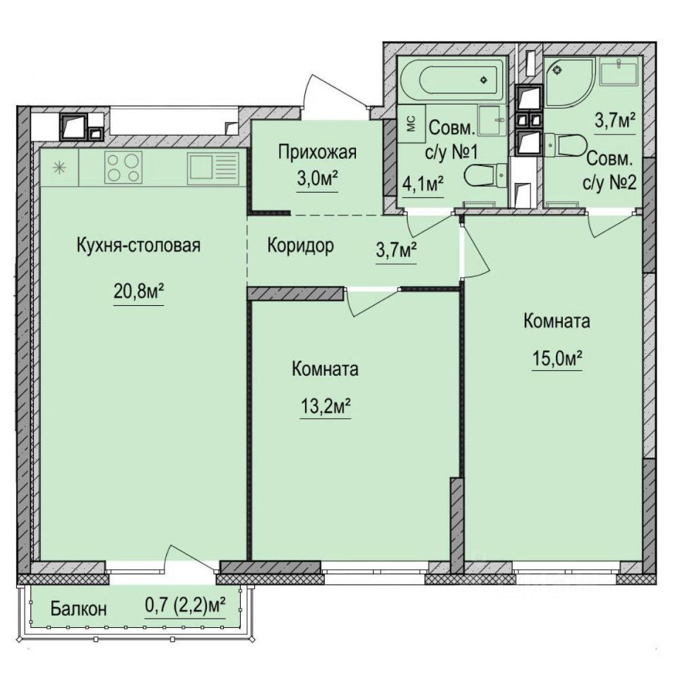 Идеальная евро 3 ккв с кухней гостинной 20 кв.м. и со своей мастер-спальней!